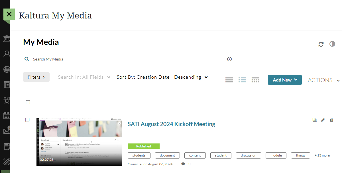 If you have older media (ex content created in or uploaded to Kaltura Media prior to August 2018) or recorded your media in a language other than English (ex French, German, Mandarin, Portuguese, Spanish, etc.) you can order captions from your Kaltura My Media.
