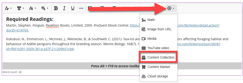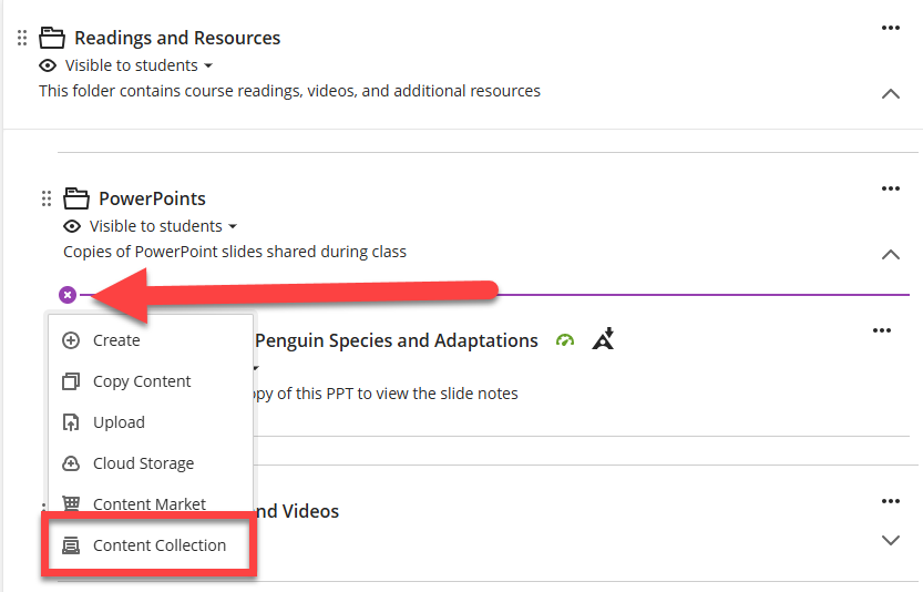 Or, from within an Ultra Document, click the Insert Content (+) button and then select Content Collection.