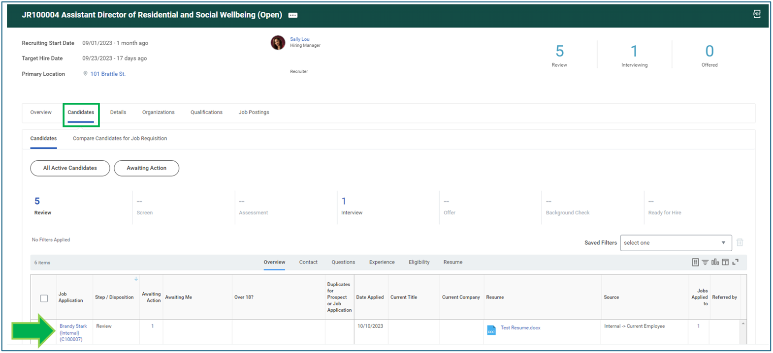 Head to the Candidates tab to review the list of candidates who have applied for the role.
