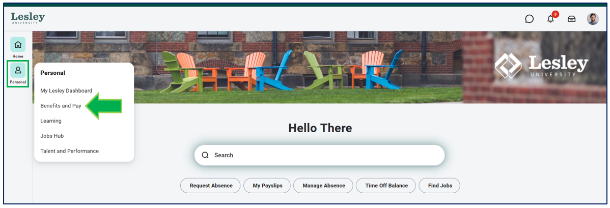 From the Workday Homepage click on the Benefits and Pay hub.