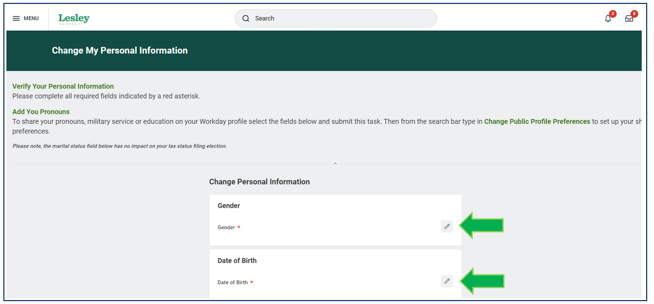 Employees are able to make changes to their date of birth, gender, ethnicity, and pronoun. Use this guide to help you add or change your personal information.