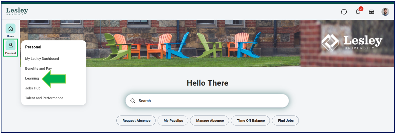 On the Workday homepage, navigate to the Learning application.
