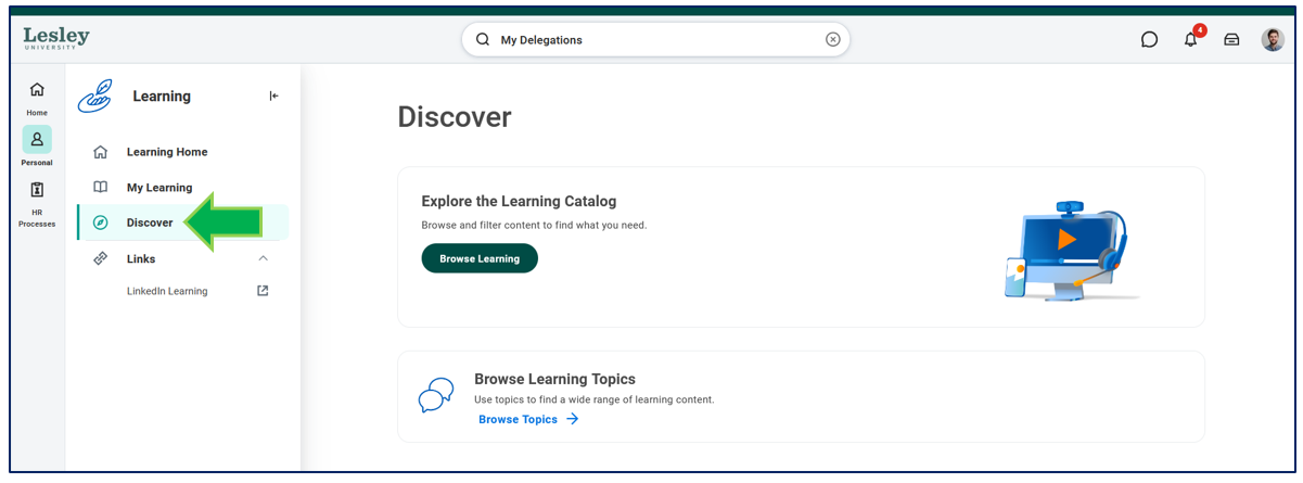 Navigate to the Learning Catalog on the Discover page.