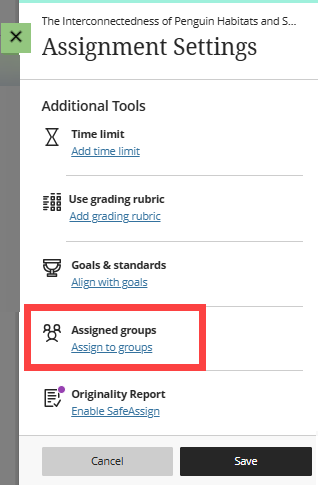 Once you have assigned your assessment to a group, click Save. You will be brought back to the Assignment Settings. Modify any additional settings and click Save to save your changes.