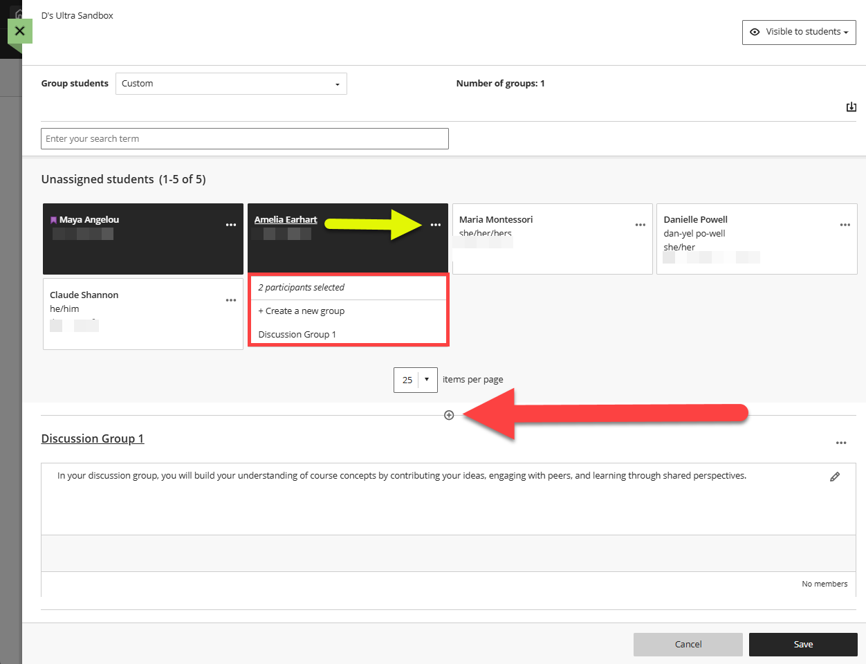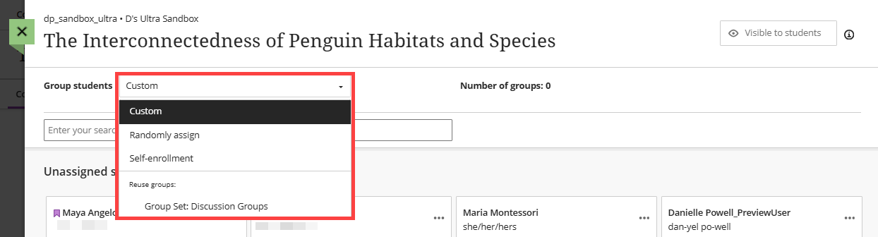 In the Group Students menu, select Custom