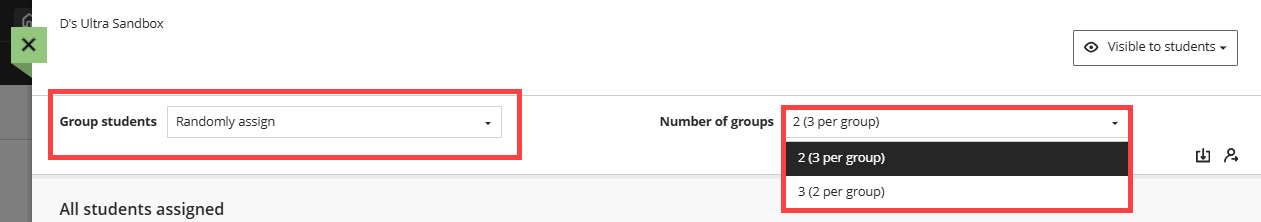In the Group Students menu, select Randomly Assign. Next, in the Number of Groups menu, select the number of groups you wish to create. Students will be randomly assigned to their groups.